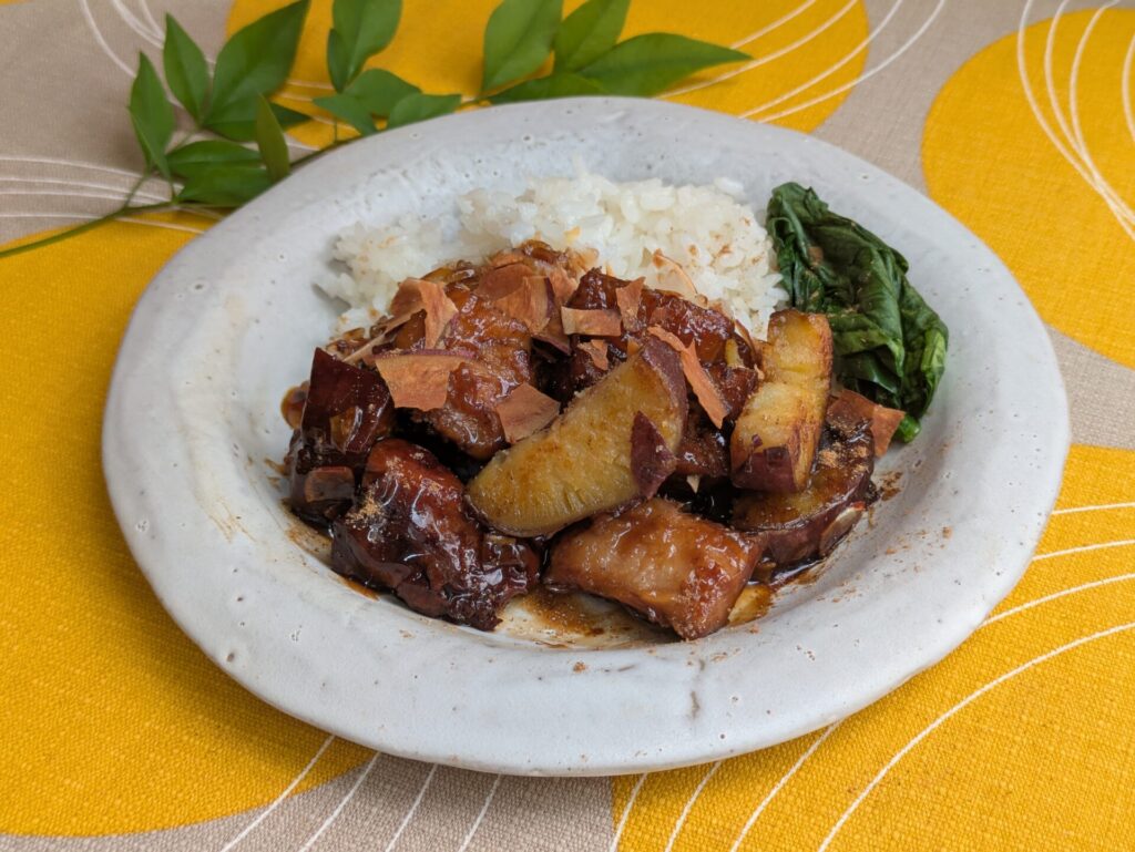 やきいもフェスの提供メニュー「焼き芋と鶏肉のいもぞう風ルーローハン」