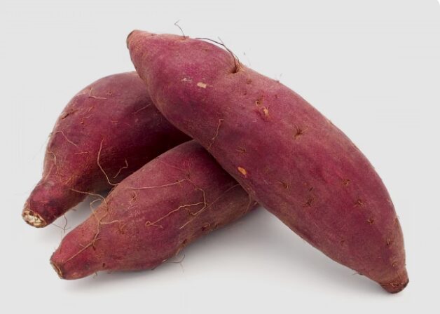 皮は濃い赤紫で、焼くと中身が美しい黄金色に。